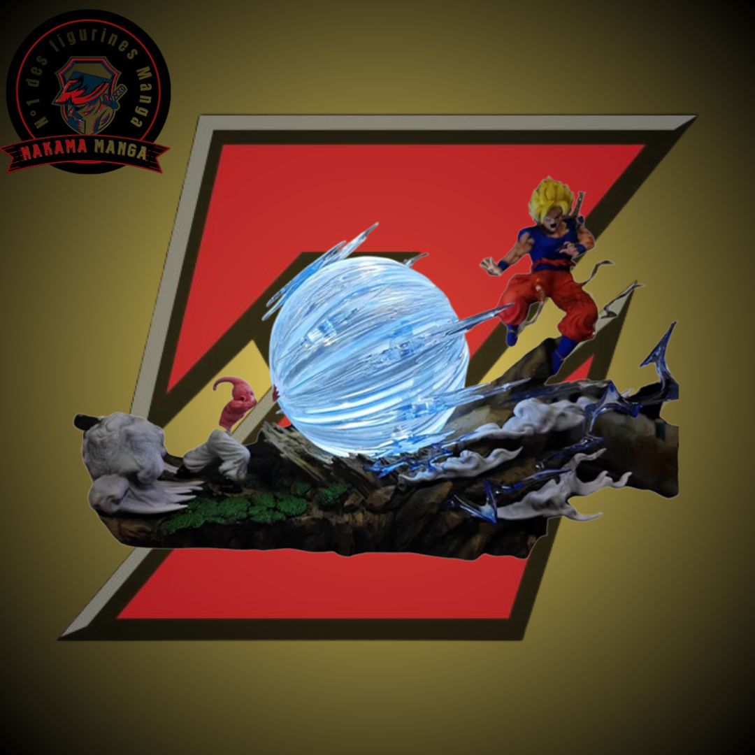Un moment décisif, une attaque légendaire ! Cette figurine impressionnante capture Goku en Super Saiyan, rassemblant toute l’énergie de l’univers pour lancer un immense Genkidama sur Petit Buu, dans l’ultime affrontement de Dragon Ball Z. Une pose puissante, un regard déterminé, et toute la force de l’espoir concentrée dans ses mains.