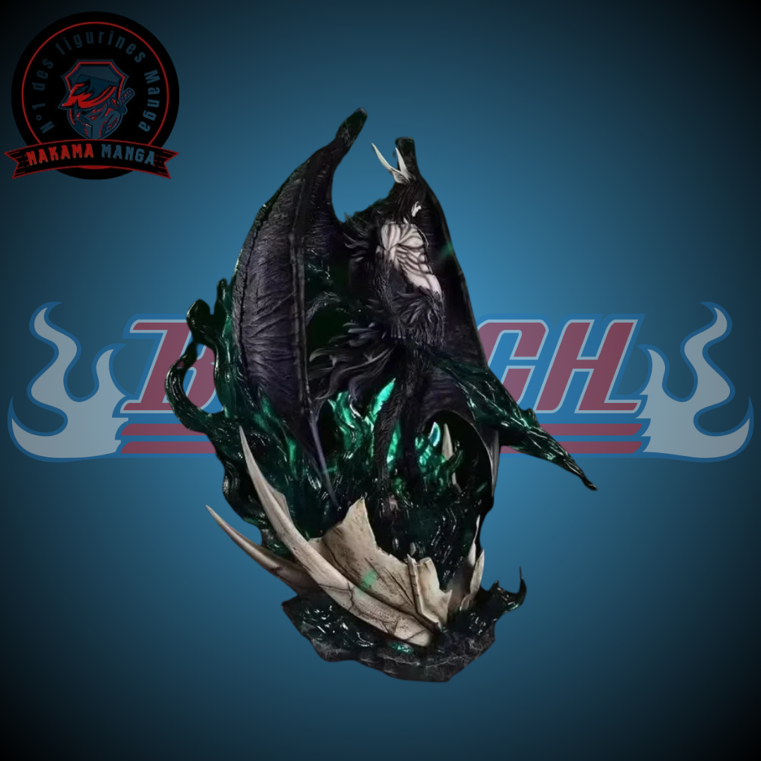 Les détails de la figurine sont magnifiquement réalisés, des ailes d'Ulquiorra aux traits fins de son visage et la texture de son uniforme, capturant chaque aspect de sa transformation avec une fidélité impressionnante.