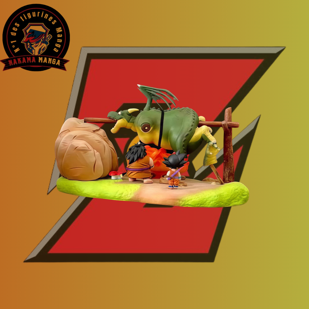 Plongez dans un moment unique de Dragon Ball avec cette figurine amusante de Goku et Yajirobe, en train de faire cuire un dragon sur un feu de camp. Goku, avec son sourire espiègle, tient une brochette de viande de dragon, tandis que Yajirobe, dans son style décontracté, surveille le feu avec une expression de contentement. Le feu de camp, soigneusement sculpté, ajoute une atmosphère chaleureuse et conviviale à la scène. La représentation du dragon, prêt à être cuit, fait un clin d'œil humoristique à l'aventure originale de Goku. Les détails minutieux, comme les vêtements de Goku et Yajirobe, ainsi que l'ambiance détendue et légère, capturent parfaitement l'esprit de camaraderie et d'humour qui caractérise Dragon Ball. Cette figurine est parfaite pour les fans de la série, apportant une touche de fun et de nostalgie à votre collection ou à votre espace.